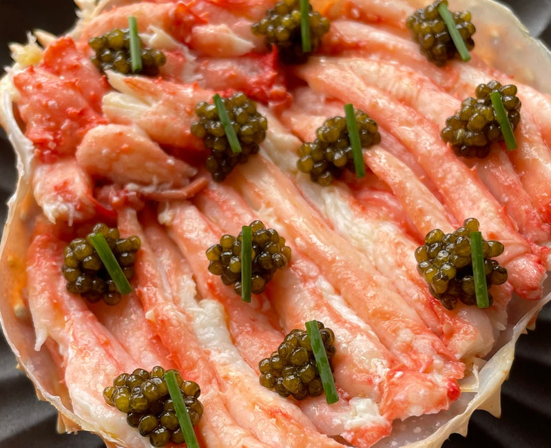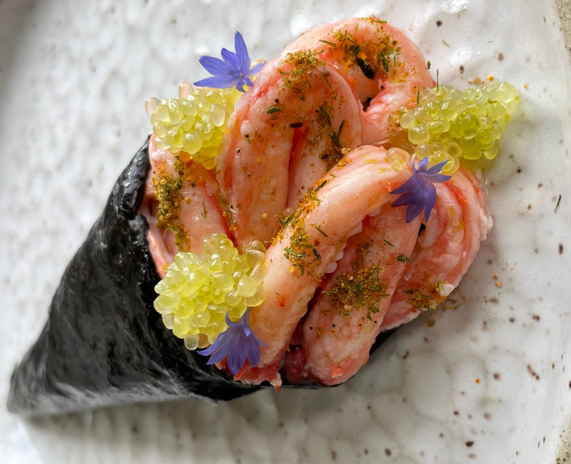 Californua king crab, Regalis nori, finger lime, Yuzu togarashi