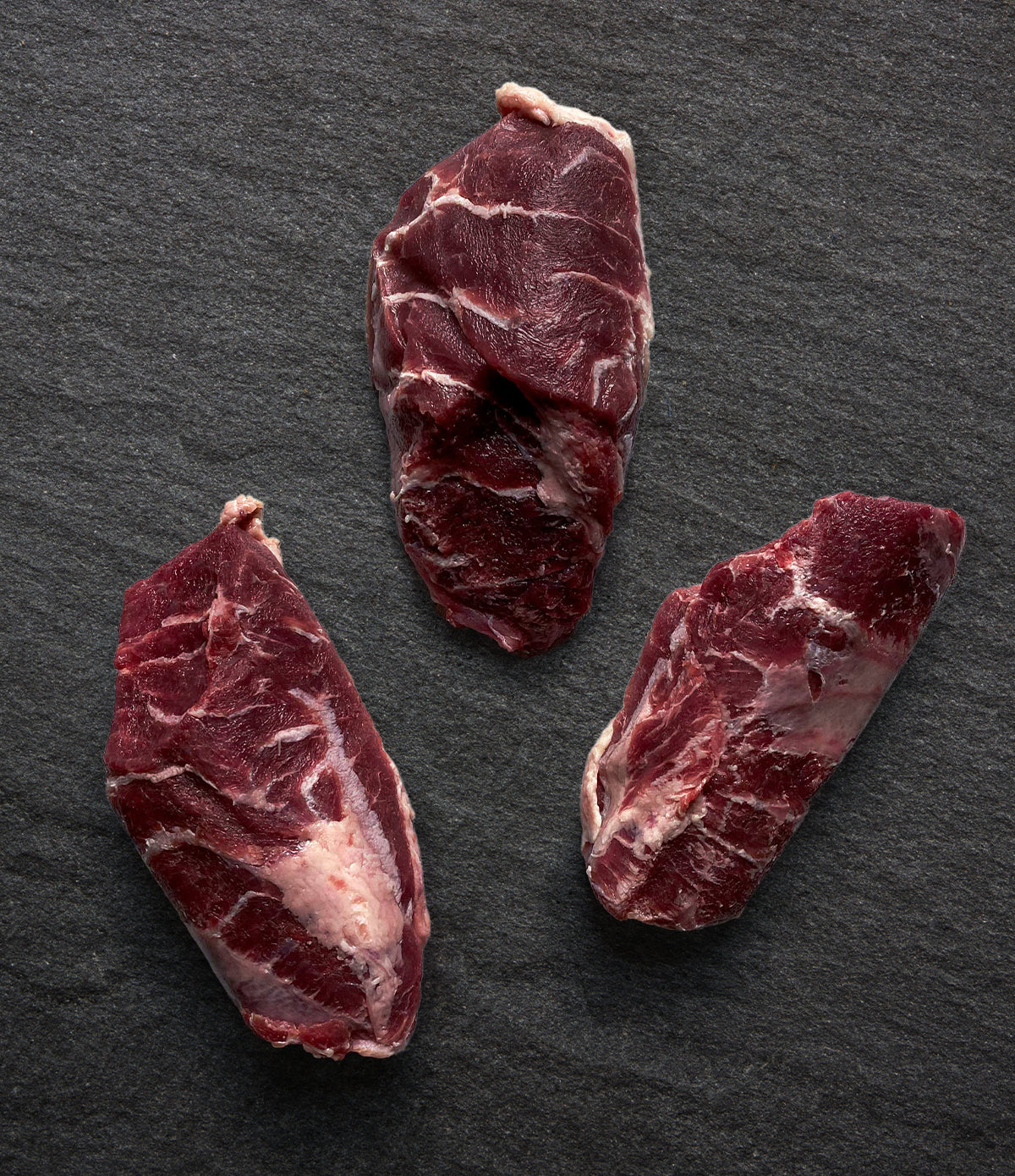 These pork cheeks come from free-range Ibérico pigs. These pigs wander ample pasture in the Southwestern Spanish countryside, with diets largely consisting of sweet acorns. The 'carrilleras' are on the leaner side, but preserve the rich, robust flavor of acorn-sweetened fat. When braising this cut, the flavors will gradually become incredibly juicy and tender, a perfect match for foraged mushrooms.