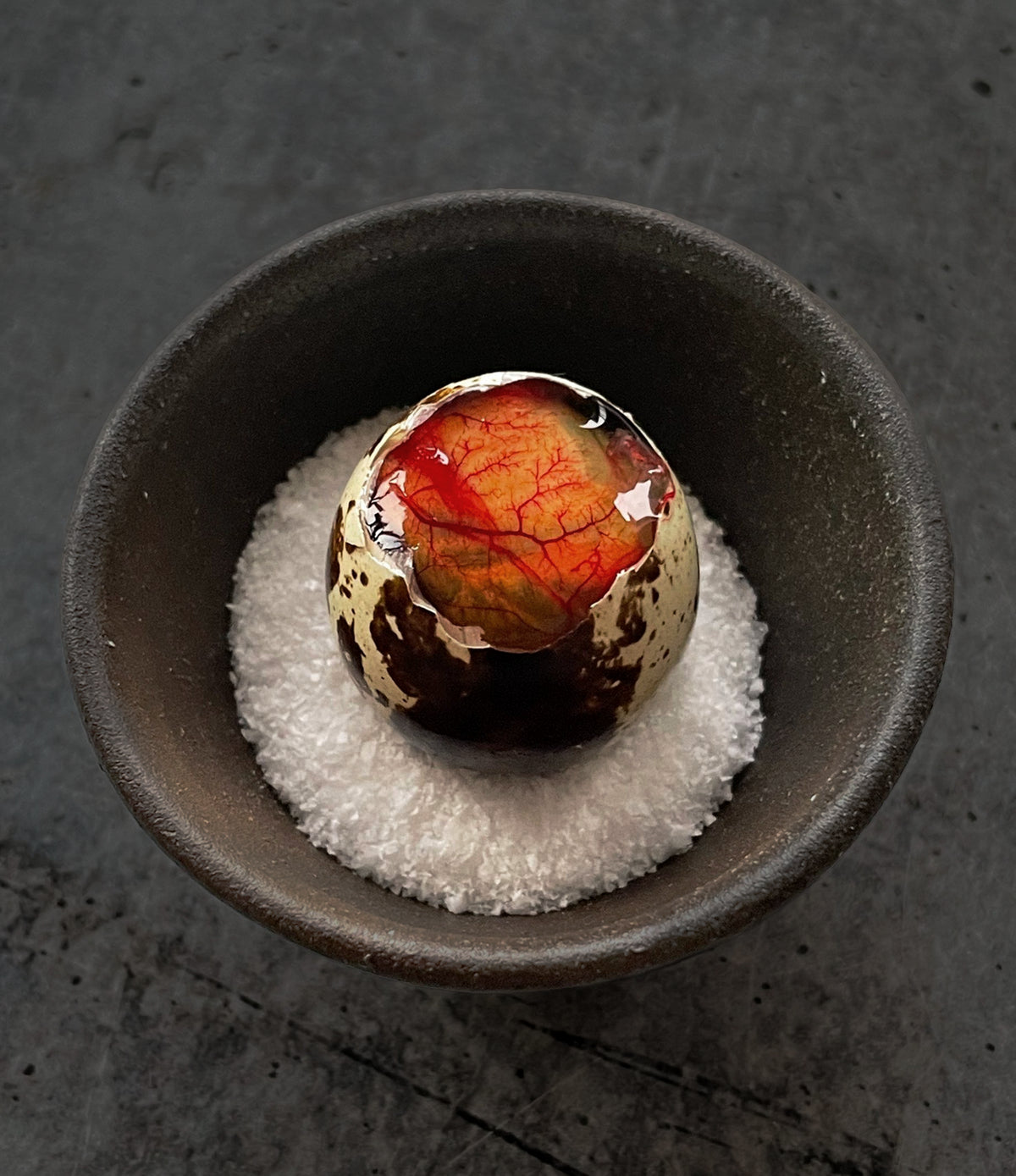 It is incredibly rare to see Balut eggs produced in the United States. In this case, their production is particularly exceptional, as they come from one of the most principled, distinguished Quail farms in the country. When the COVID-19 pandemic initially hit, this farm was faced with the sudden disappearance of the vast majority of their restaurant and wholesale partnerships, with countless birds still in line to be hatched and harvested. By pivoting a considerable amount of their operation toward Balut production and export, they were able not only to sustain their business, but to avoid wasting their birds and eggs or risking unsustainable overpopulation. Although the majority of their Balut production is destined for export to Singapore and Vietnam , we are proud to offer this exceptionally well-produced rendition of a rare product here in the United States.