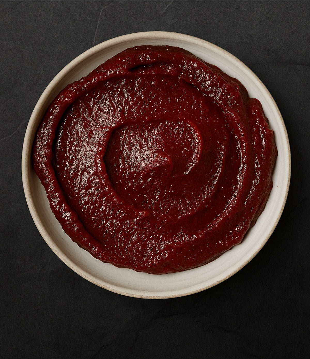 Aside from the strawberries, this thick, deep red paste is made from Korean chile peppers, fermented soybeans, and bamboo salt. With funk imparted through fermentation, spice from the peppers, and sweetness from the rice, this is an incredibly versatile sauce that is worth experimenting with and incorporating into a wide variety of recipes and contexts.