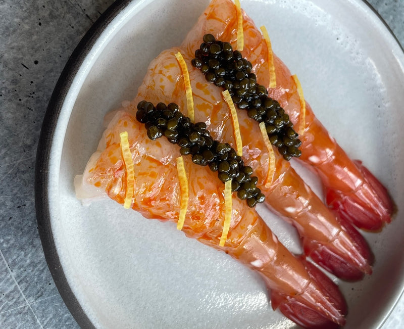 Spot prawn crudo, chili oil, black kaluga, lemon zest