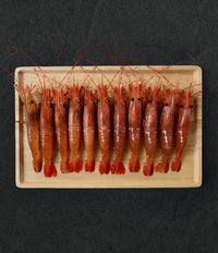 Superficial splendor notwithstanding, Botan Ebi are truly a privilege to enjoy. Tucked deeply among nooks and crannies hundreds of feet below the surface and miles off the coast, they’re much trickier to catch than other, more familiar crustaceans. It is a testament to the talent and dedication of our fishing partners that we are able to share these prawns so far and wide, but the work is far from done once they first emerge from the sea. We and our partners are painstakingly committed to delivering these prawns to you alive and well, as few indulgences can compare to the marvel of obscure, fresh seafood.