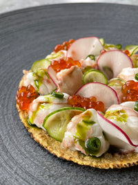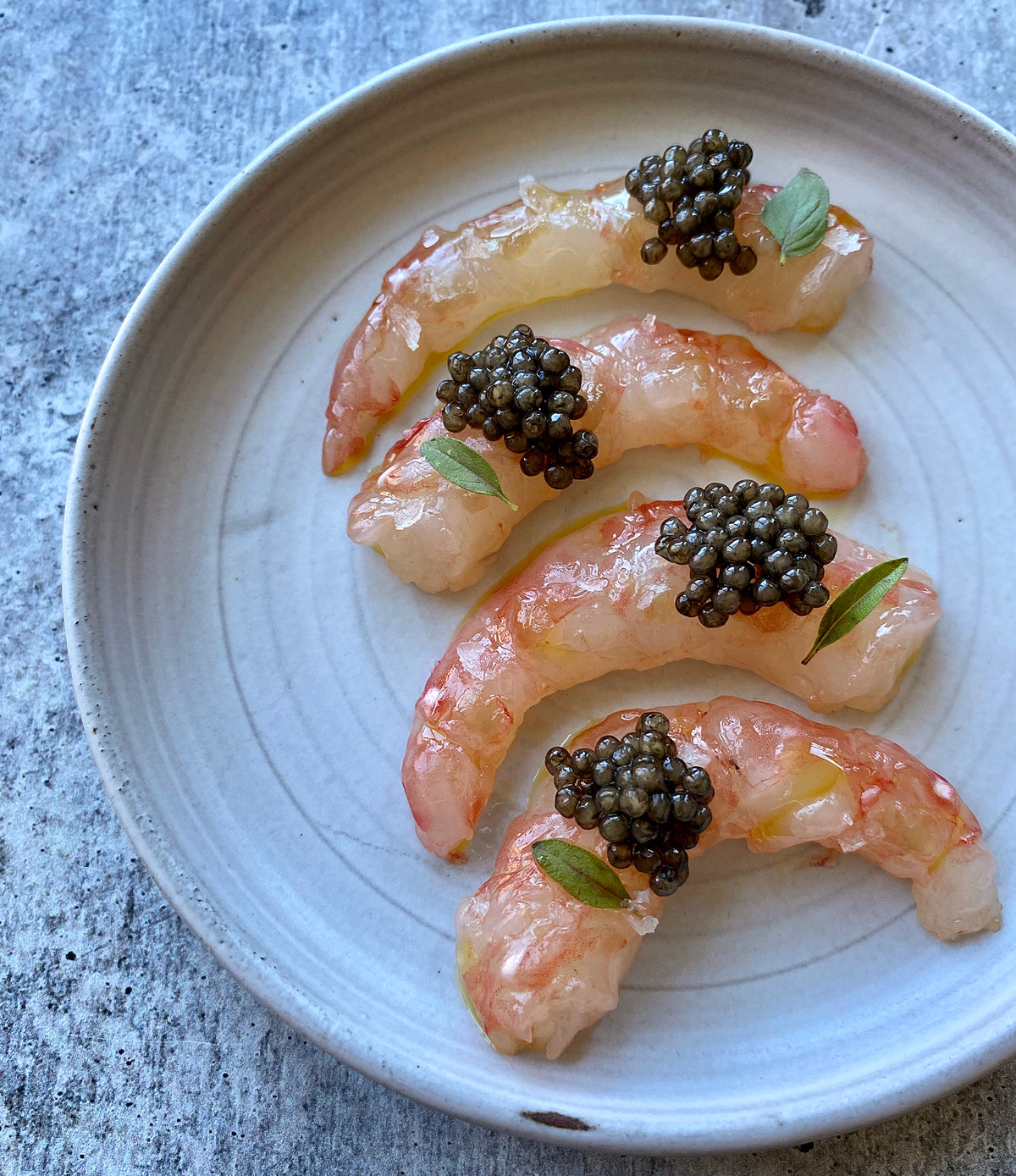 Spot prawn crudo, chili oil, black kaluga, lemon zest