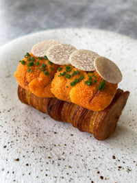 Uni has a deep, buttery flavor packed with umami, and luscious texture that melts onto your palate. All of this is layered atop a brisk, invigorating fragrance of the ocean, leading many to describe eating uni as experiencing the very essence of the sea.