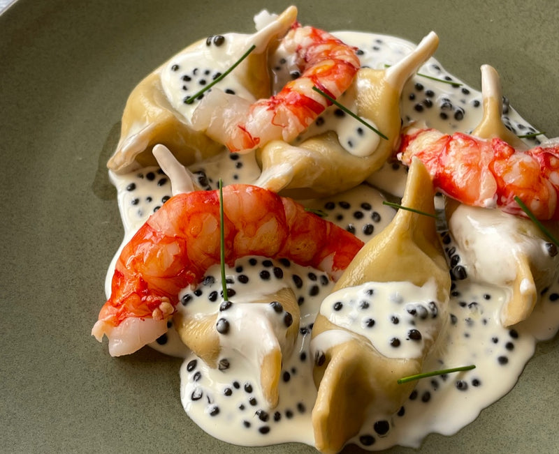 Carabineros are the world's largest prawns, living far off the coast in deep waters of the Eastern Atlantic and Mediterranean. In Spanish and Portuguese cuisines, they are typically prepared with just a little bit of salt and a few minutes on the grill, showcasing their sheer richness and sweetness. We also love them seared, poached, or steamed, and we often dress them with Nori butter to coax out an even creamier mouthfeel with amplified oceanic herbaceousness. Regardless of how they’re prepared, we implore you not to let any bit of these prawns go to waste -- so much of their distinctive flavor is in the head, which retains its brilliantly red color throughout the cooking process. A stunning fish to share with guests, we are always thrilled to feature these Carabineros.