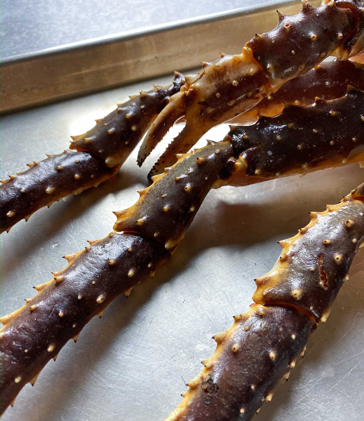 King Crabs are massive in size, formidably clawed, and ten-legged, with an undeniably regal presence that perfectly suits their name. These Norwegian Red King leg clusters are flash frozen just after being caught, offering the most scrumptious and densely loaded expression of crab flavor in a convenient, easily utilized format. A bit more intense and assertive in flavor than Blue Kings, these Norwegian Reds are a wonderful distillation of the iconic crab flavor profile when prepared simply.