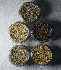 This bundle includes 1 x 4 oz Caviar from each of our 5 Dutch varieties for a total of 5 x 4 oz jars along with 6 mother of pearl spoons (2 of each color).