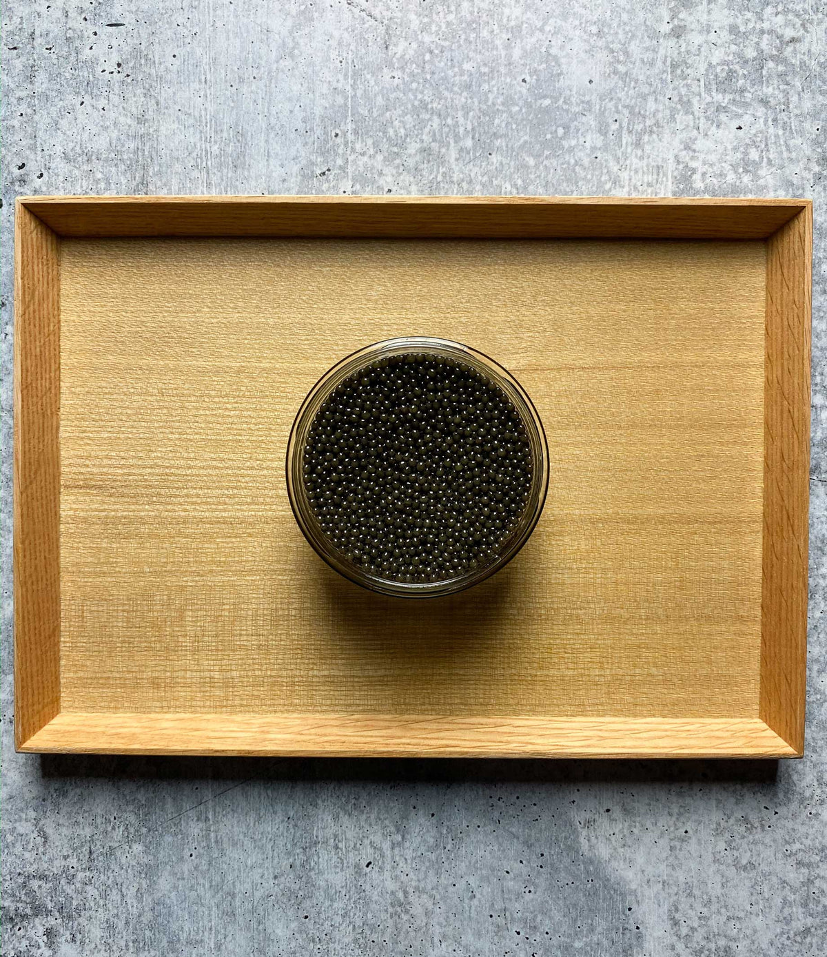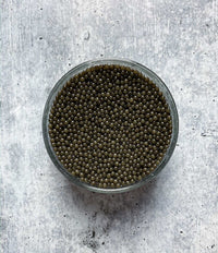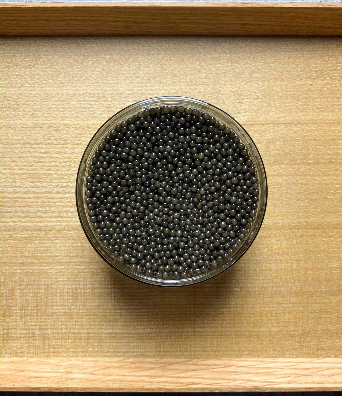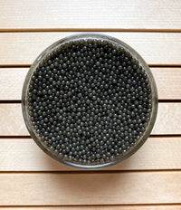 Platinum is one the rarest classifications on the caviar spectrum, with only 5% of the harvest technically qualifying for this designation. In addition to its distinctive color, Platinum Osetra must be of a certain size and quality, and is made from sustainably farm-raised acipenser gueldenstaedtii, more commonly referred to as Osetra or Russian Sturgeon, a slightly smaller and more slowly maturing relative to the famed Beluga Sturgeon. The texture of this caviar is firm, with a nutty flavor, a briskly briny aftertaste, and an indulgently buttery resonant mouthfeel. This is among the most impressive, distinct caviar options in our lineup.