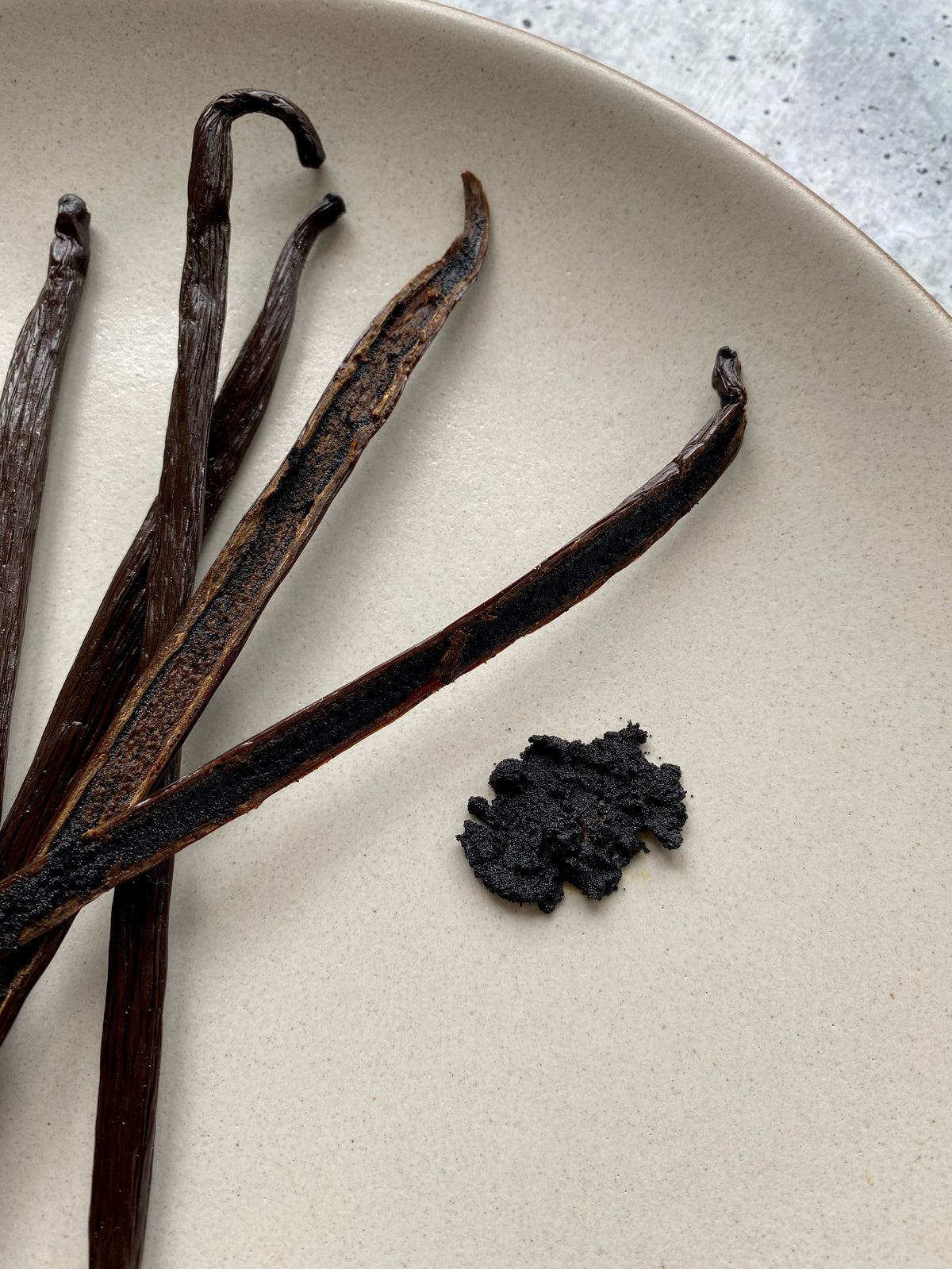 Vanilla Tahitensis is the second most familiar vanilla in the world, behind its taller, skinnier cousin v. planifolia. In addition to being shorter and stouter, it is also stronger, fruitier, and more floral in fragrance and flavor. Oilier and with higher water content, v. tahitensis is more sensitive to heat than typical vanilla, making it amenable to no-bake recipes or relatively short, low-temperature bakes. On its own, the paste pairs wonderfully with tropical or juicy stone fruits, concentrating tart sweetness and imparting an elegant, anise-y aftertaste to whatever it accompanies.