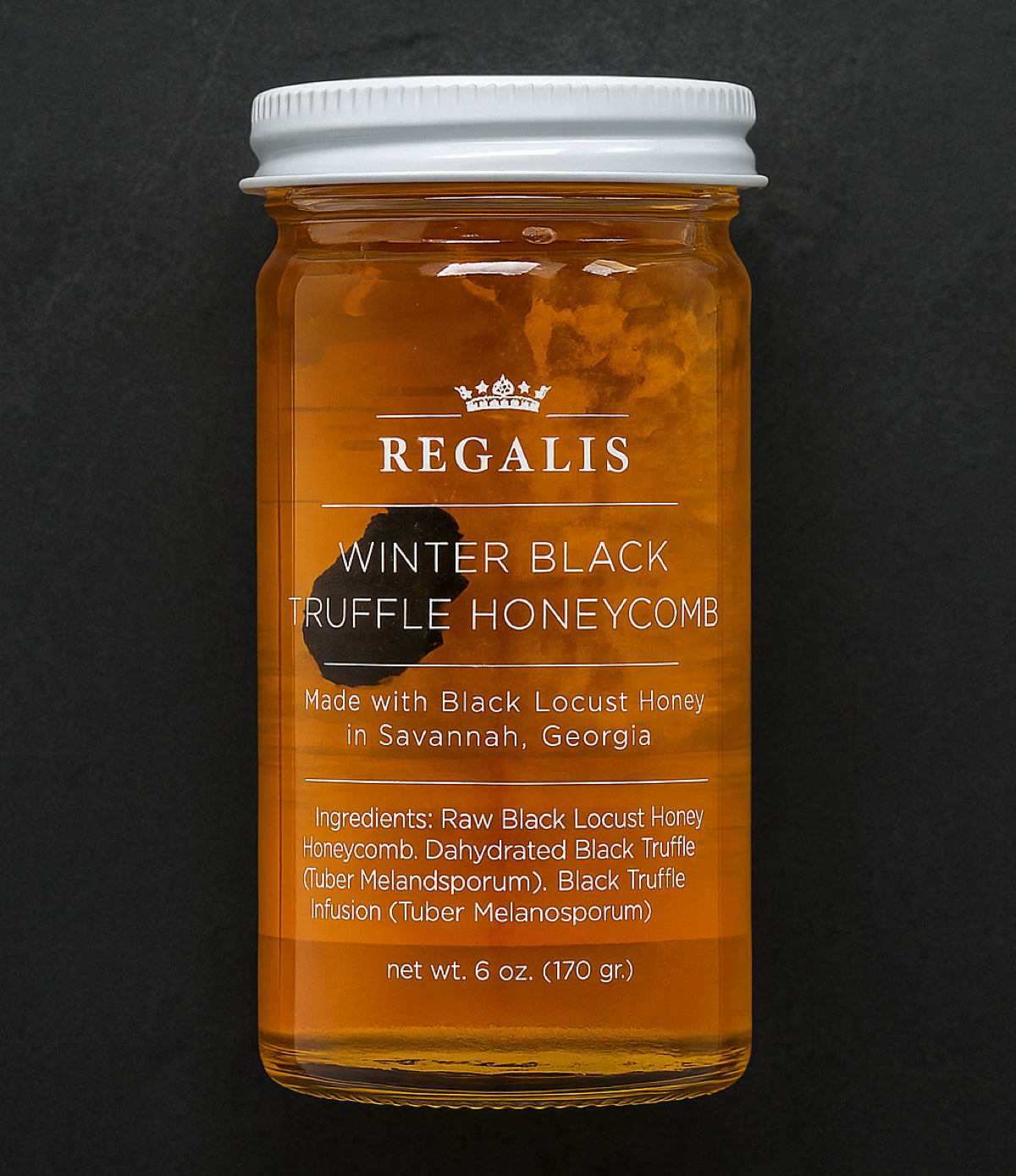 This rich, floral, deeply golden honey comes from star-thistle flowers near Savannah, Georgia. With a crisp, fully edible wedge of honeycomb as well as fresh black truffles from Tennessee, this is a superbly complex and decadent honey that dramatically elevates a cheeseboard, gelato, or idle spoon with no further accompaniment.