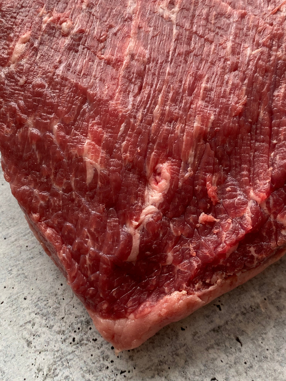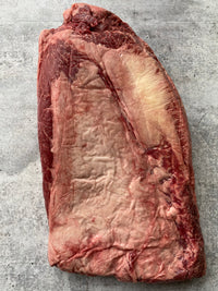Brisket is a cut of beef from the breast section of the cow, typically cooked slowly enough to break its tough, connective tissue down into tender and succulent meat. Different cultures utilize brisket in a broad variety of ways, but the principal of low and slow heat application recurs, whether marinated and smoked as in Texas Barbecue, cured and simmered for corned beef, braised and boiled in a British stew, or cooked, pressed, and marinated with soy sauce for Korean Jangjorim. In the spirit of springtime arriving across the United States and in respecting the tradition of this brisket’s Texan provenance, we enthusiastically recommend smoking this brisket outside if you can, over natural hickory wood chips. Alternatively, thinly slicing the brisket and cooking it in a spicy, tangy pho broth is a wonderful way to enjoy this brisket.