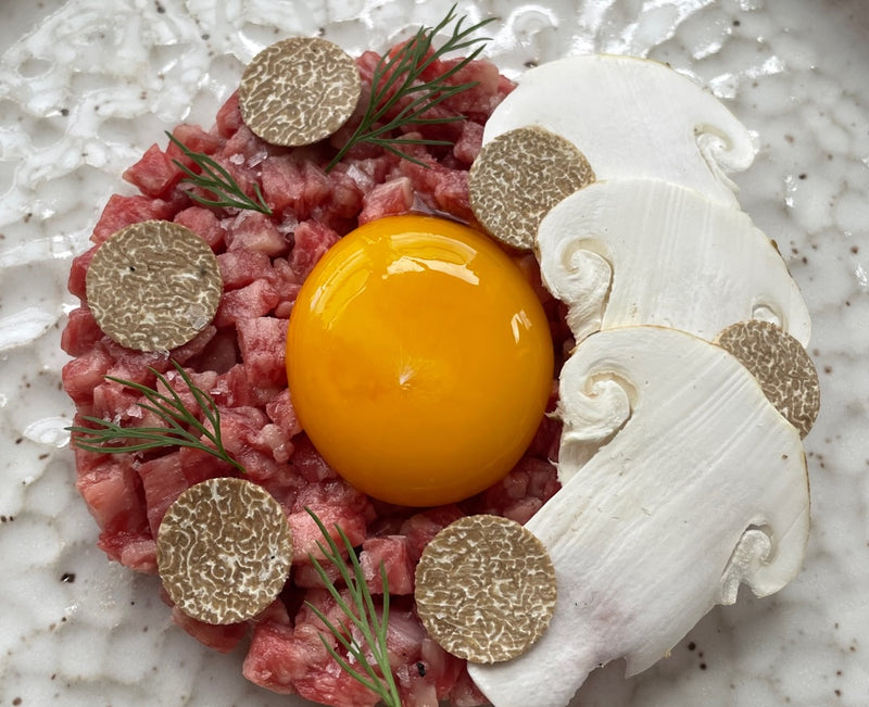 A5 Ribeye, egg yolk, truffles, truffle salt, matsutake.
